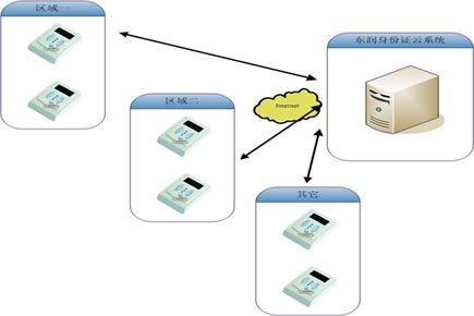 本场景适合大区域、多网点身份证阅读需求,网点具备网络条件(专网、公网皆可)